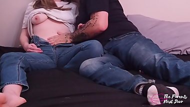 Daddy massages teens thighs in her