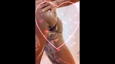 18yo ebony teen with slim waist, nice tits in the shower, Snapachat Play