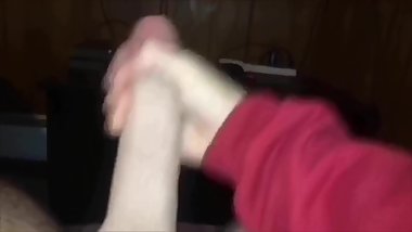 Skinny guy strokes his huge cock on
