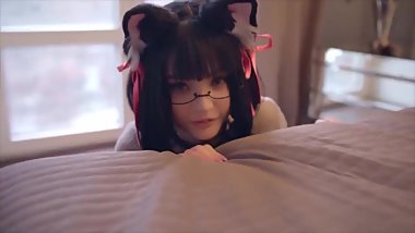 Tribute: handjob & cum shot to nice white schoolgirl dressed bunny costume