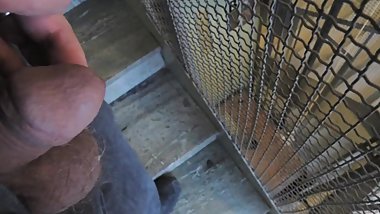Impressive blowjob in the elevator performed by a young brunette