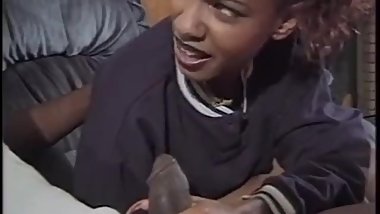 18 year old ebony teen, this is her first time she jerking off a dick