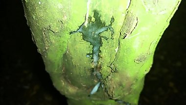 Showing creampie on a tree and