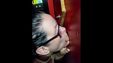 Nadia Ali having fun with black cock in a gloryhole