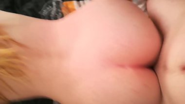 Redhead GF takes another cumshot on fat ass