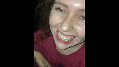 Little redhead plays and teases for camera and begs for big cock