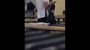 Japanese college babe blowing a hard cock