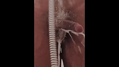 Multiple orgasms playing in the shower with toys