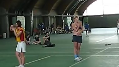 Big tit blonde teen plays with herself at the beach