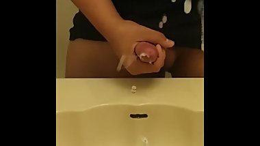 Young teen jerks his big cock till huge cumshot