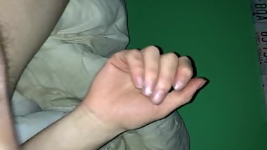 Horny stepsis jerking off her stepbrother's big cock like a real master
