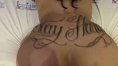TATTOOED TEEN WITH PIERCED NIPPLES SHOWS BODY AND SPANKS WHITE ASS