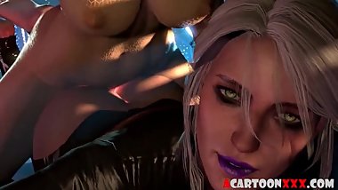 A girl is fucked by the giant dick of an orc and pee on him