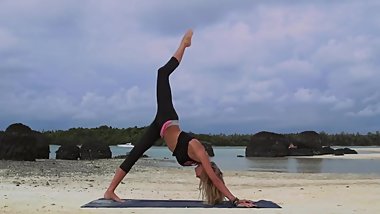Amateur fit teen fingered & fucked on public sex beach