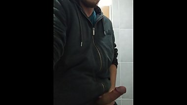 Teen risky public bathroom handjob