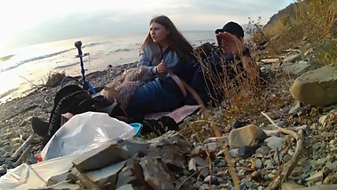 Girl perfectly sucked right on the beach near the sea