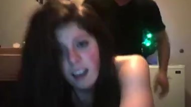 Taboo! Stepbrother with big cock fucks his stepsis in front of girlfriend
