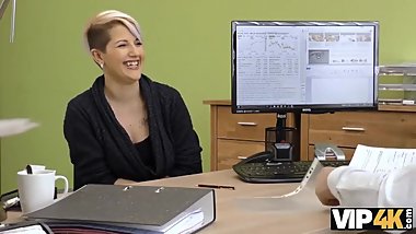 LOAN4K. Loan agent organizes porn casting for amateur brunette chick Abby