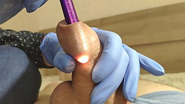 Gloves handjob and foreskin play flashlight 4k