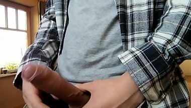 He almost collapses after orgasm POV STAND JOB CUMSHOT