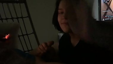 cute college slut sucks uncut cock while he plays video games