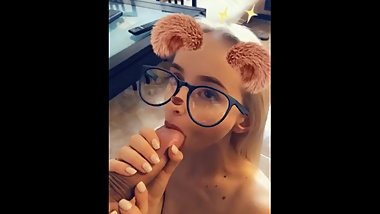 Pink hair nerdy thot With glasses gives blowjob on Snapchat