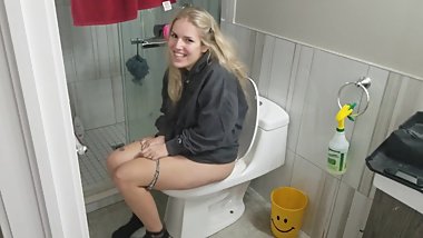 Cute teen sings twinkle twinkle while pissing on toilet