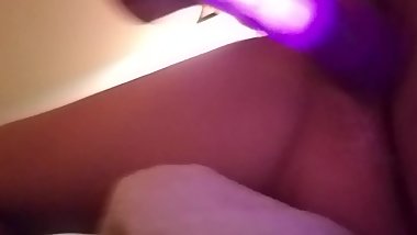 Little slut playing with her purple vibrator, and gets so wet