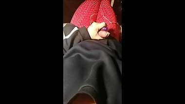 hot horny cam girl masturbates in fishnet bodystocking