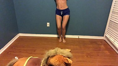 Petite Yoga Teen Stretches and Plays with Herself