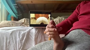 Hot busty teen masturbates with dildo to porn (female orgasm)