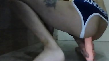 Trying to ride huge cock but my