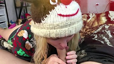 Christmas slobber blowjob from a cute blonde