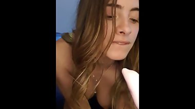 Teen lesbian plays with dildo while