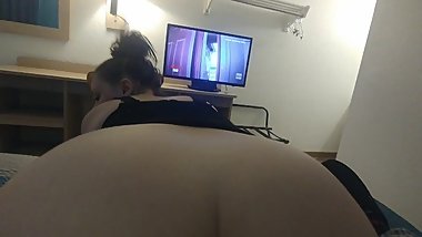 Sporty babe with great ass sucks