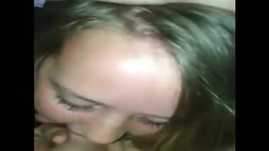 Tiny 18yo stepdaughter gives her stepdad with small cock deepthroat blowjob