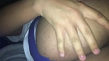Playing with my big tits and humping pillow