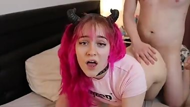 Red Dress Redhead Teen Doggy Fuck & CreamPie Lick Moaning Female Orgasm