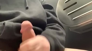 Cute bitch give me a handjob on public metro train then suck it behind scen